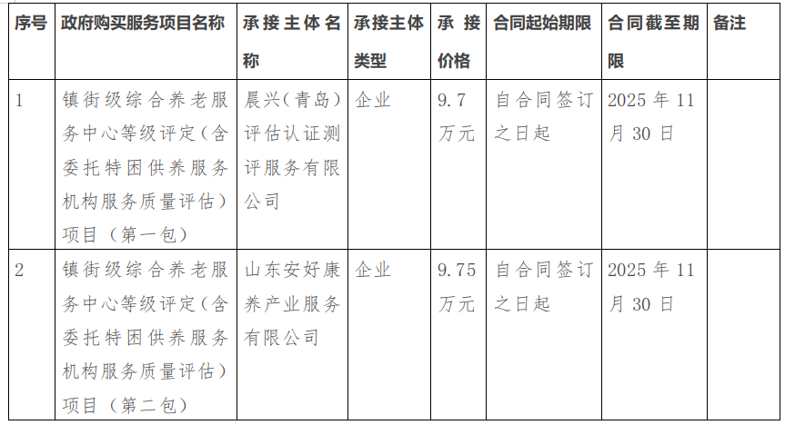 青岛市民政局2025年政府购买服务项目承接主体(镇街级综合养老服务中心等级评定(含委托特困供养服务机构服务质量评估)