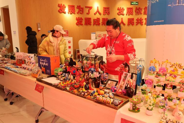 活动当天,市民中心一楼大厅四十个摊位有序排开,现场人流如织,气氛热烈。在“年味好物区”,手写春联的墨香与精美年画的红火相映成趣;转角处的“非遗手作区”,共建社区“幸福石岭非遗手工创益工坊”带来的编织刺绣精巧别致,泥塑面人活灵活现,引得来往市民纷纷驻足;而在“创意文创区”与“轻食饮品区”,城市IP衍生品、国潮设计饰品与香气四溢的现磨咖啡、健康零食,则牢牢抓住了年轻群体的目光。创业者们热情洋溢地介绍着自己的产品,市民们则手提购物袋满载而归,大家纷纷表示,本次活动既为零成本的初创梦想提供首次试水机会,又为市民带来一场汇聚传统年味与新潮创意的消费体验,诚意满满。