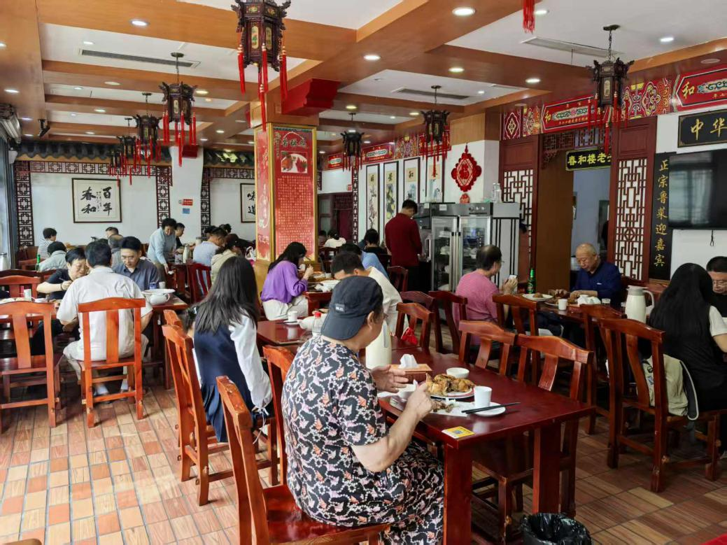 中华老字号春和楼饭店针对今年十一与中秋喜相逢的有利时机,提前策划和做好充分准备,食材足量,制作精细,油爆活海螺、非遗香酥鸡、非遗牛肉灌汤蒸饺、鲅鱼蒸饺等名吃,深受市民和游客喜爱。假期以来,餐厅包房与大厅天天排队叫号就餐,营收额比同期增长近两成。