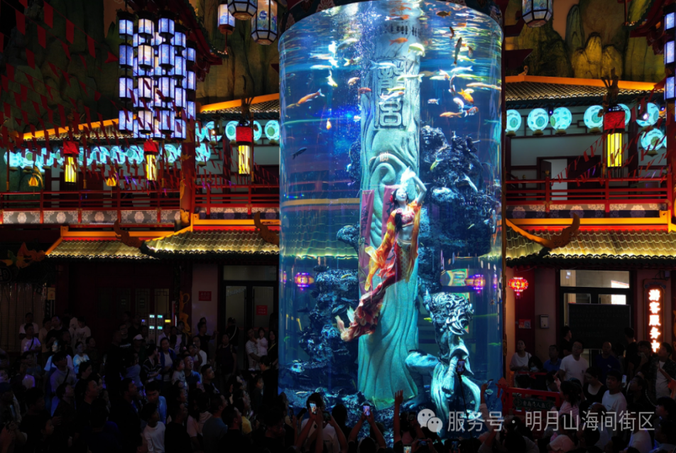 明月山海间不夜城主题街区里人潮涌动,一场场跨越“古”与“今”、融合“国”与“家”的沉浸式盛宴,让市民游客目不暇接。不仅有《唐宫夜宴》《一梦惊鸿》等国风经典带来传统美学的共鸣,在中央电音广场东北侧,月映山海烟花秀以绚丽的烟花,将节日的浪漫氛围推向高潮。