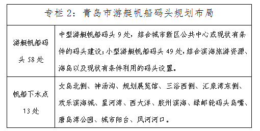 2.推动建设各级各类运动船艇码头。综合船艇码头建设运营条件和水上运动需要,结合我市滨海资源和空间发展战略,推进田横码头群、鳌山湾码头群、崂山风景区码头群、东岸前海码头群、环胶州湾码头群、唐岛湾码头群、灵山湾码头群和龙湾码头群等8大码头群建设,重点布局4处邮轮码头、59处游艇帆船码头和13处帆船下水点,将我市打造为东北亚区域性邮轮港、国际知名的旅游度假游艇目的地和水上运动中心。积极探索政府和社会资本多渠道合作模式,引导社会力量参与建设运营运动船艇码头。