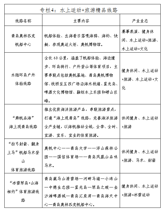 4.产业融合不断深化。水上运动与互联网、健康、养老、旅游、文化、教育培训等相关产业日益融合。青岛奥帆中心成为集帆船运动、旅游休闲等功能于一体的国家滨海旅游休闲示范区,青岛国际帆船周·青岛国际海洋节荣膺“中国最具国际影响力十大品牌节庆”“中国首批文旅融合十大节庆品牌”,入选国家体育产业示范项目。我市位列2021年体育旅游热门境内城市排行榜第三名;奥帆中心、“魅力青岛、扬帆起航—水陆环岛户外体验线路”等多次入选中国体育旅游精品景区和线路。