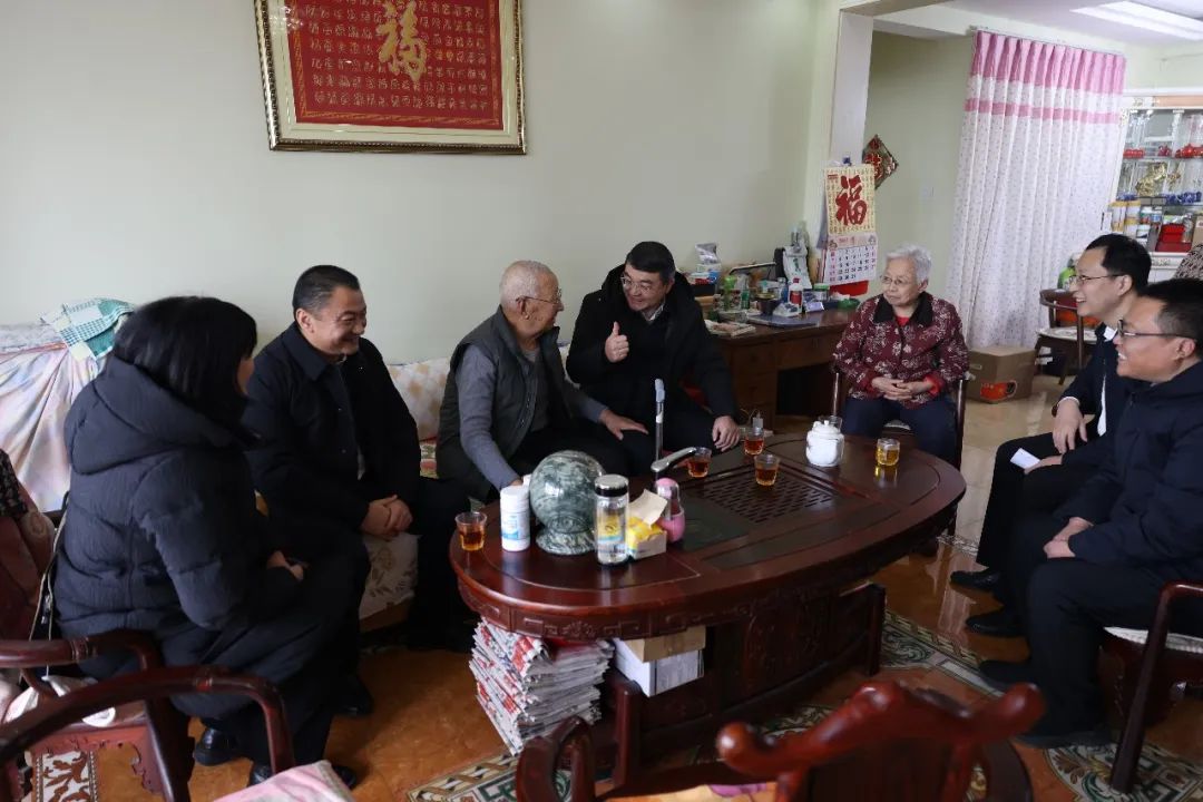 点滴关怀送温情,亲切话语暖人心。孙刚一行先后走访慰问军休干部孙汉英、王元荣等,今年94岁的孙汉英曾参加过淮海战役、渡江战役以及抗美援朝战争,并被授予中国人民解放军胜利功勋荣誉章、抗美援朝纪念奖章。92岁的离休干部王元荣3次荣立三等功,并在离休后积极参与社会公益事业。孙刚一行与两位军休干部及家属拉家常、忆往昔、问冷暖,详细询问了他们的身体状况、生活情况,感谢他们为祖国和人民作出的贡献,并向他们送上诚挚的节日问候,祝愿他们身体健康、家庭幸福,过一个欢乐祥和的春节。