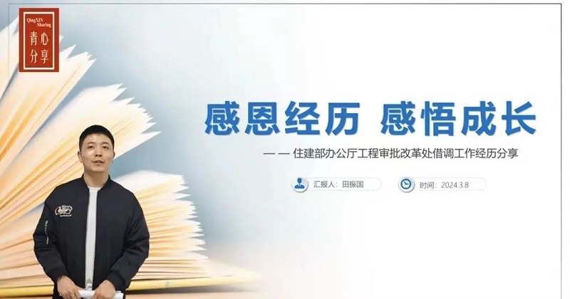 “从提出思路到组织论证,从制定方案到征求意见,从安排部署到检查落实,从总结提炼到宣传汇报,步骤严谨,环环相扣。”在住建部帮助工作的田振国分享了上级机关重程序、重导向、重实效的工作方法和勤恳务实、谦逊平和的工作作风。