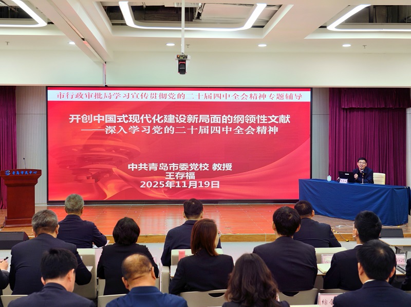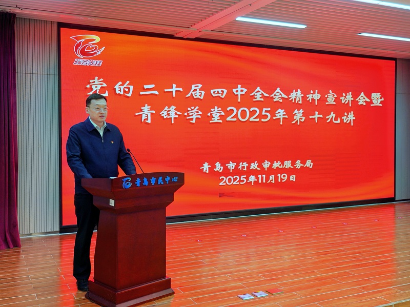 为深入学习领会党的二十届四中全会精神,引导广大党员干部把思想和行动统一到全会精神上来。11月19日,市行政审批局组织开展党的二十届四中全会精神宣讲会暨青锋学堂2025年第十九讲,邀请市委党校政治学教研部副主任、教授王存福作专题辅导授课。市行政审批局全体党员、干部,市民中心党委委员、入驻部门首席代表近300人参加会议。