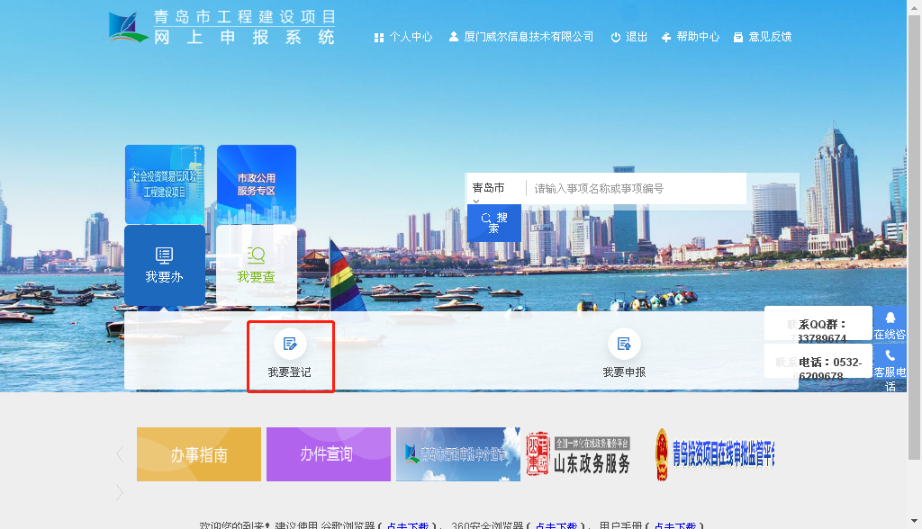 3.登录成功后点击首页“我要办”中的“我要登记”;