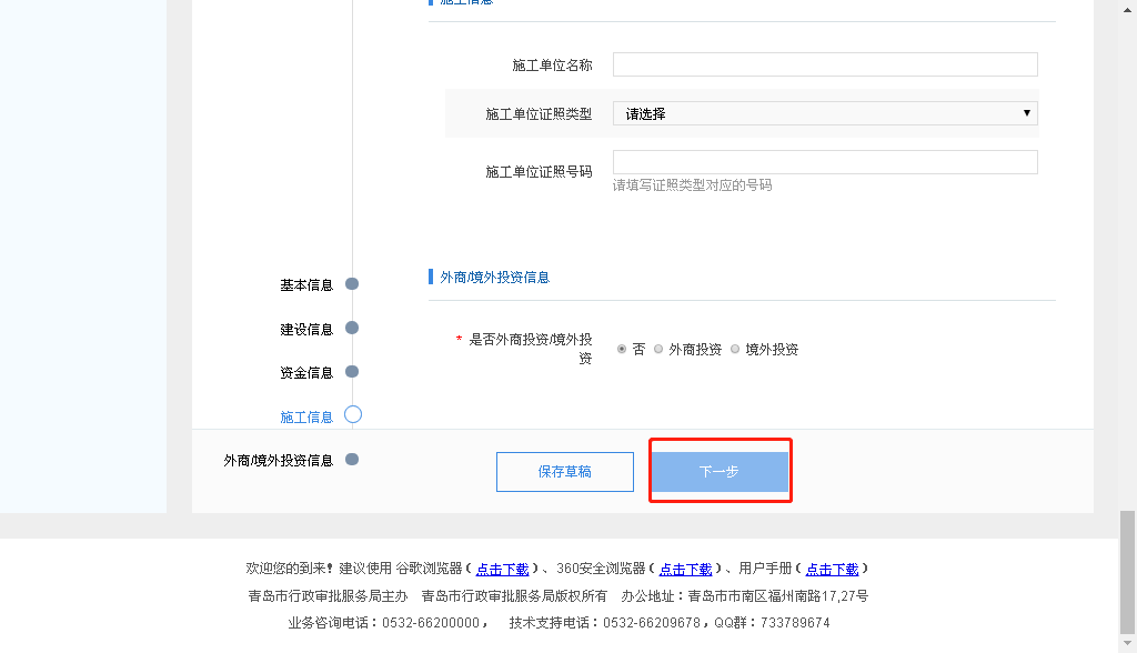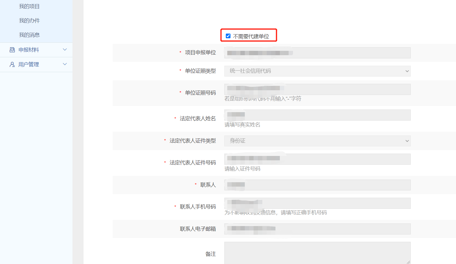 如果不需要代建单位,勾选“不需要代建单位”,直接进行下一步即可;如果是代建单位在此页面填写代建单位信息;