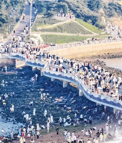 麦岛路西侧停车场公园“停车+公园+云桥”的设计,重塑了滨海空间的体验模式。刘 栋 摄