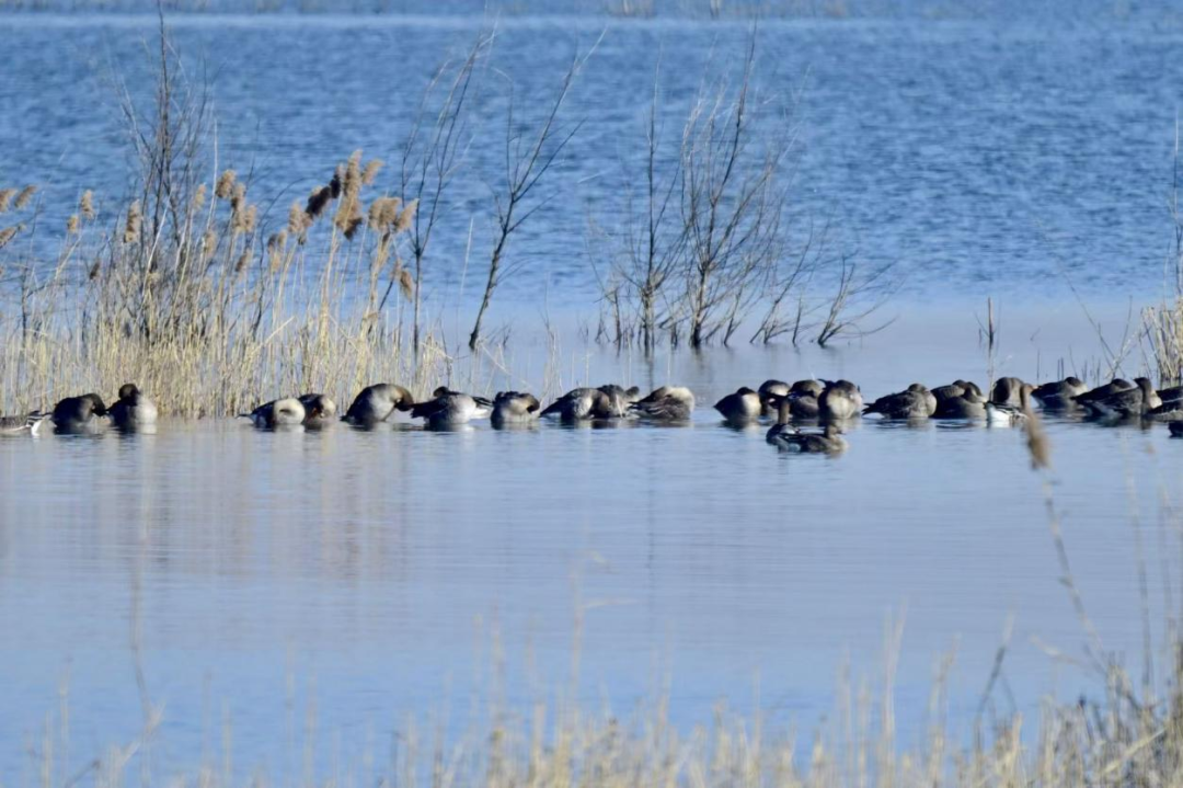 在莱西市莱西湖湖边,工作人员使用观鸟望远镜现场人工监测,计数后共监测到4000余只越冬水鸟,种群数量最大的鸟种为豆雁,约2000余只。还监测到国家二级重点保护野生动物花脸鸭200余只、斑头秋沙鸭40余只。
