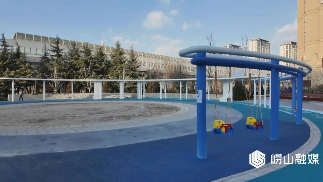 崂山区城市管理局园林绿化管理科工作人员 龚利军:劲松五路口带公园在改造提升后,在功能空间上分成南北两区,北区以动为主,有篮球场健身设施等;南区以静为主,有休闲廊架座椅等能满足市民对不同室外活动的需求。