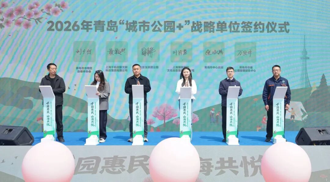 现场同步举行战略合作签约仪式,上海豫园华灯文化创意集团、上海千机创新文旅科技集团、北京玉渊潭公园、青岛市中心血站、青岛市市南区自媒体协会五家单位,与青岛市市级公园管理服务中心正式达成战略合作,围绕文创开发、科技赋能、公园共建、公益服务、媒体传播等领域展开深度合作,进一步拓宽“公园+”跨界融合边界,为青岛公园城市建设注入多元新动能。值得关注的是,2026年“公园+”系列活动继2024年后,再度被列入青岛市市办实事项目。樱花会举办期间,“樱光夜宴”夜间主题活动、百姓舞台文艺展演、樱花欢乐跑等特色活动将轮番登场,让城市公园从单一生态空间,转变为全龄友好、活力满满的民生幸福空间。
