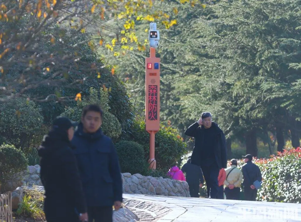 图片在浮山森林公园各个入口处、山路上,随处可以监控探头、电子显示屏和防火宣传幅等,提醒登山人员配合做好防火工作