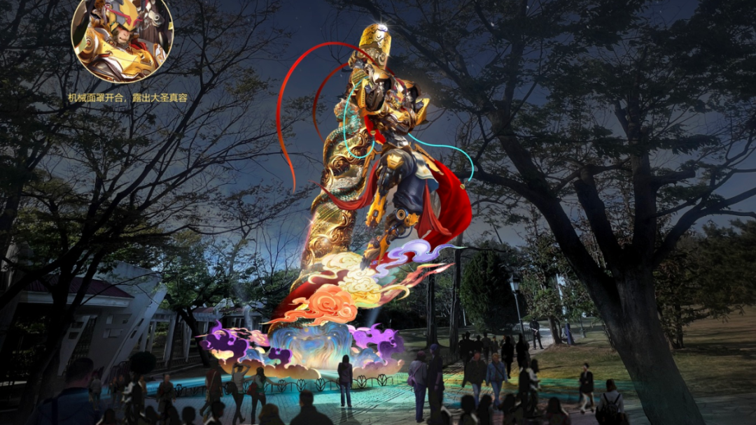 12米高机甲悟空以机械骨骼结构融合非遗自贡彩灯技艺,打造最高动态机甲灯组。
