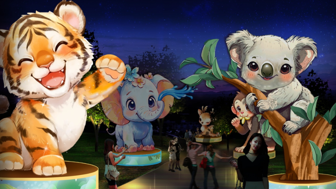将孩子们天马行空的画作打造成立体灯组,与栩栩如生的动物灯组交相辉映,每一盏灯都是一个童趣故事,每一处光影都是一次奇妙邂逅。