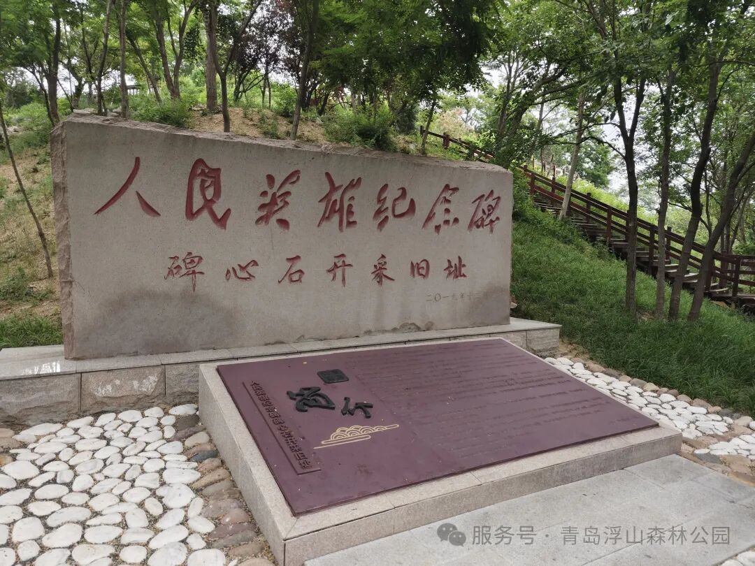 今天,人民英雄纪念碑碑心石位于浮山森林公园青大三路入口景观绿化区域,全年免费为市民开放。