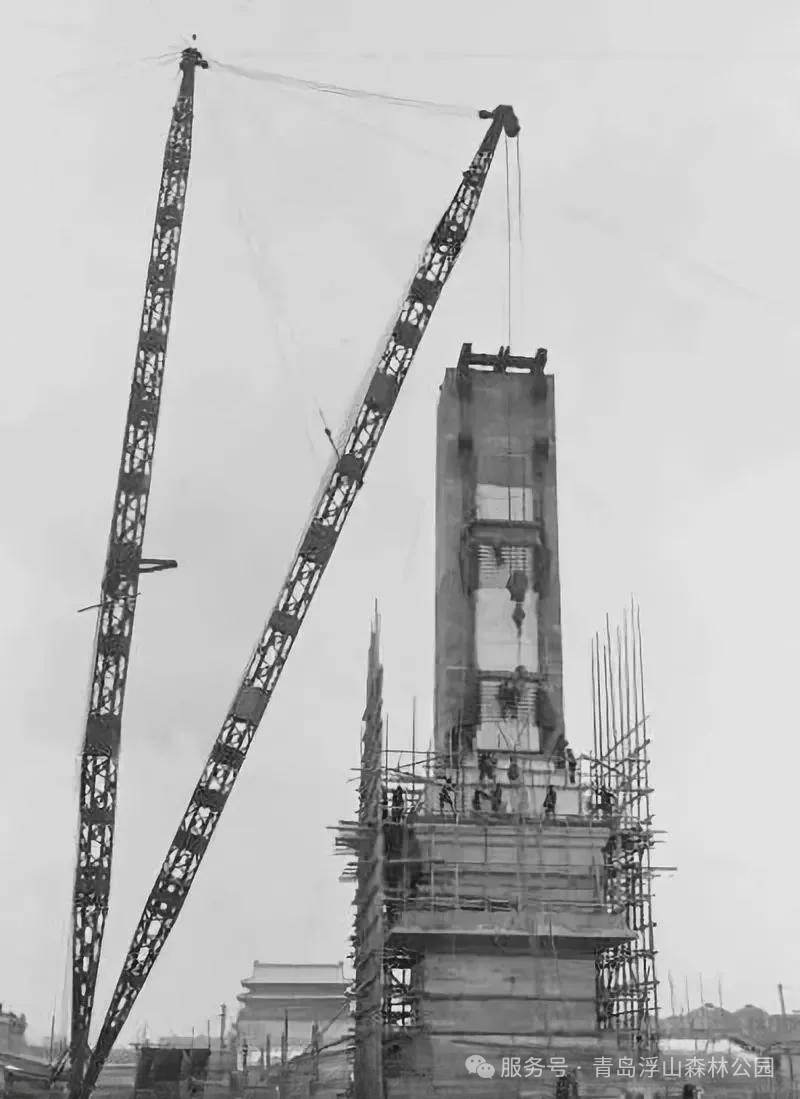 天安门观礼区,三组巨大的“人”字形结构托举出庄严的“众”字造型,与巍峨的人民英雄纪念碑遥相呼应。当新型战机编队呼啸掠过纪念碑上空时,很少有人知道——这座象征着民族精神的丰碑深处,正跳动着一颗来自青岛浮山的“石之心”。