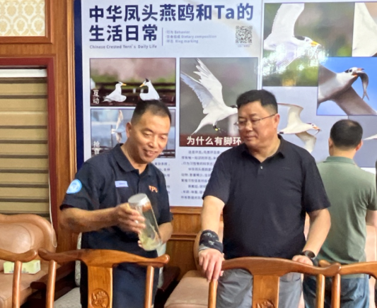 8月15日,全国鸟类环志中心主任江红星一行赴青岛,就全球极危物种中华凤头燕鸥的栖息地保护工作展开专题调研。