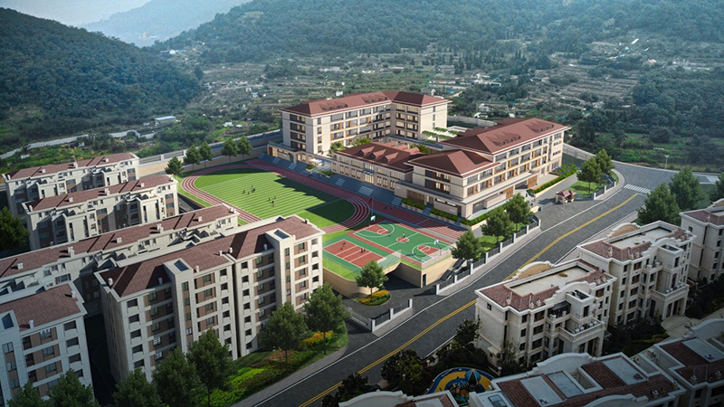 规划方案立足地域特色与自然肌理,采用“红瓦坡屋顶”风格,与青岛城市风貌一脉相承,建筑立面以浅咖色、米黄色水泥纤维板为基底、搭配暖木色构件,实现现代简洁与地域传承的有机统一。同时,依托山地地形精心打造中央庭院与立体室外运动场,让建筑与自然生态和谐共生,为学生营造舒适开放的成长空间。项目坚持集约高效布局原则,有机串联教学、运动、生活三大功能板块,构建便捷高效的校园流线,塑造功能复合、环境优美的现代化校园形态,既彰显了绿色低碳、为民造福的政绩导向,也为片区发展注入新活力。