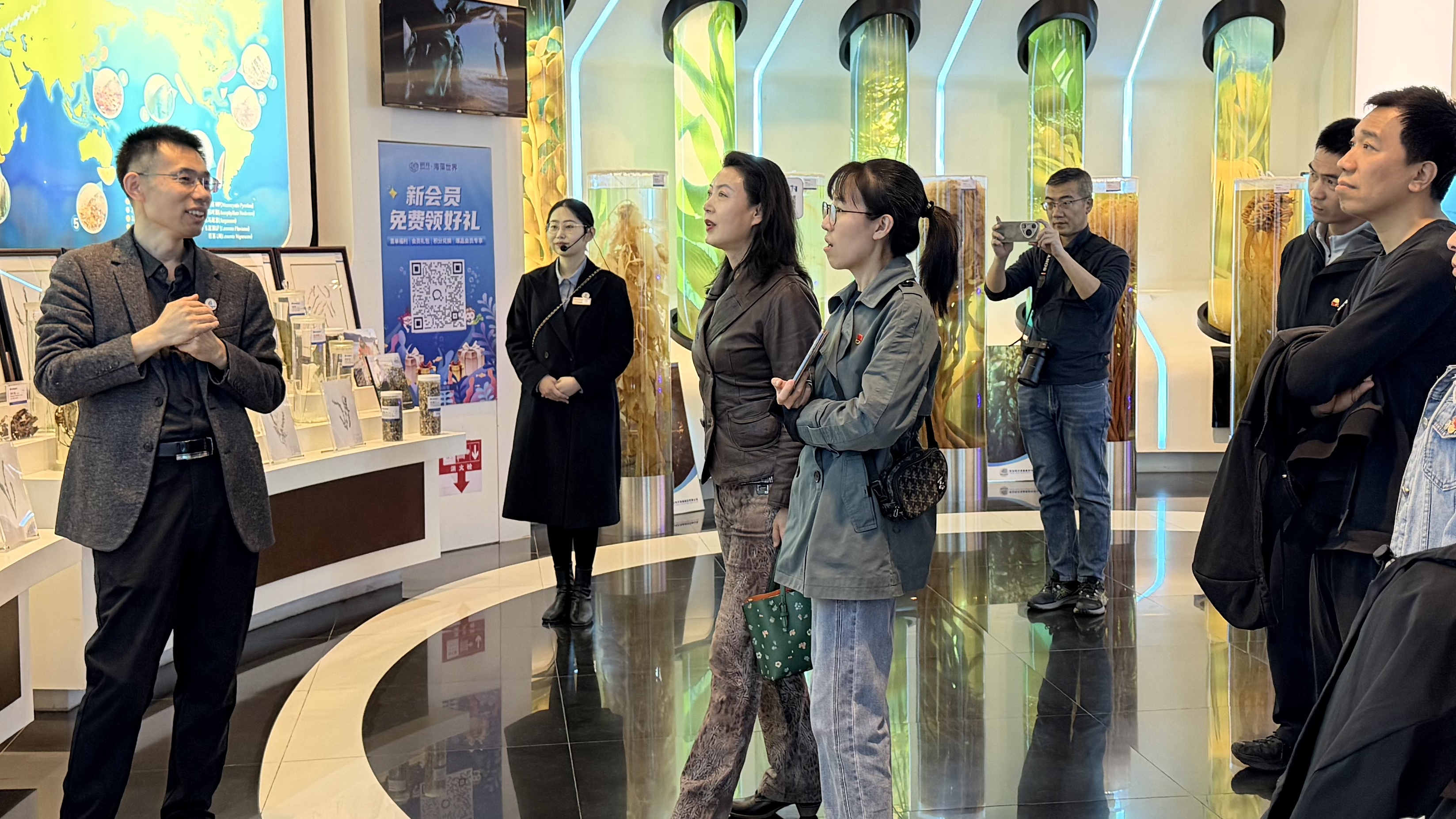 在企业相关负责人陪同下,空间艺术中心一行先后走访参观中国海藻科技馆、全国重点实验室等特色展区,全面了解海藻资源从基础原料延伸至健康食品、生物医药等多领域的产业化应用成果,直观感受企业在生物科技研发、产学研融合发展中的创新实践,深入认识海洋生物产业由传统利用向高值化、功能化转型升级的发展路径。参观过程中,双方围绕企业海洋文化传播展示、现代海洋产业发展建设等方面成效深入沟通,并就下一步深化对接协作、精准开展为企宣传服务等工作进行探讨交流。