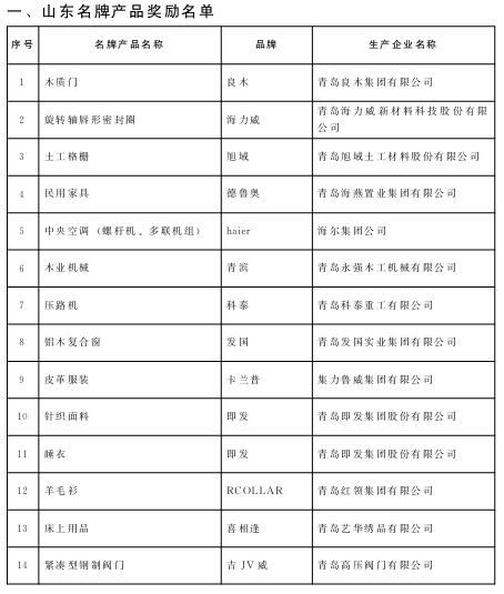 2011年,在市委、市政府的正确领导下,坚持以科学发展观为指导,大力实施名牌战略,工业知名品牌创建工作取得显著成效。新获山东名牌47个、青岛名牌37个,行政认定驰名商标20件、省著名商标58件、市著名商标61件。为鼓励企业争创工业知名品牌,促进我市品牌经济深入发展,根据市政府《关于建立新创工业知名品牌奖励制度的通知》(青政发〔2004〕56号),经市政府同意,对2011年度新创工业知名品牌企业予以奖励(名单附后),奖金总额为3410万元。