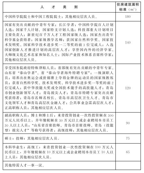 青岛市人才公寓住房面积标准