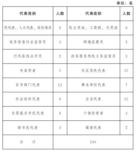 通过随机抽取、组织推荐和自愿报名、组织遴选相结合的方式,邀请10000名市民代表分别在市级主会场以及区(市)、高新区分会场,现场听取市政府部门负责人的述职报告。其中,每组述职报告会邀请市民代表2500人(含市级主会场100人)。