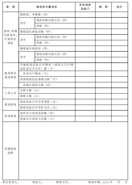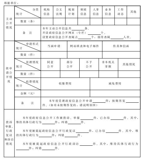 政府信息公开工作情况上报表