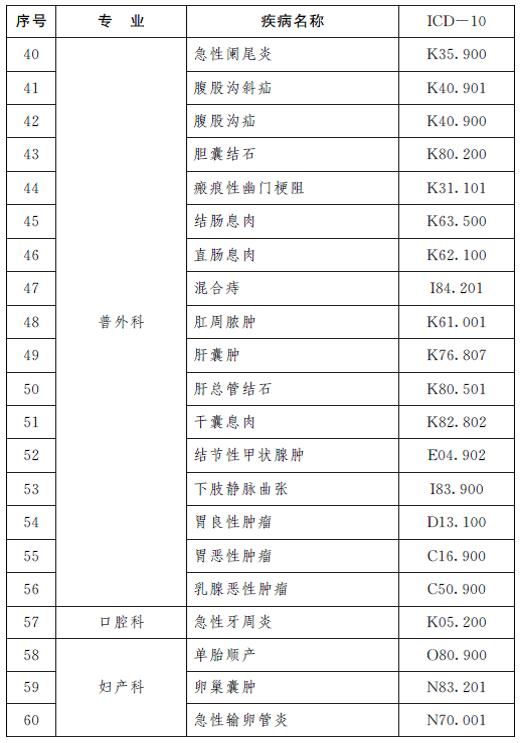 青岛市县(市)域内住院诊疗病种参考目录
