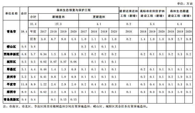 附件:“绿满青岛”国土绿化行动造林任务分解表