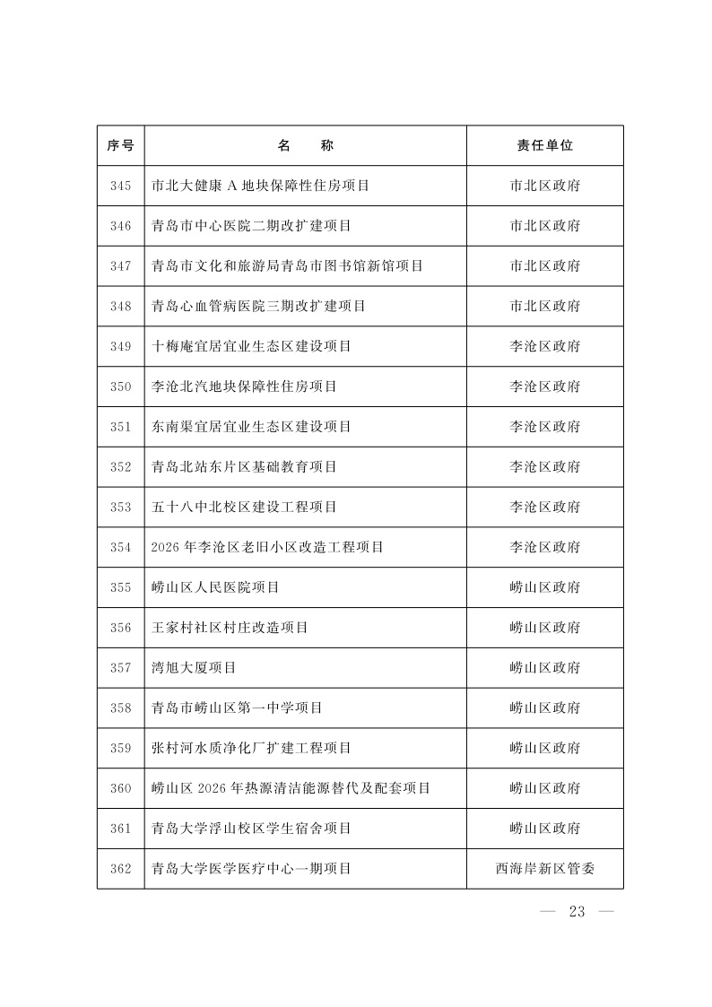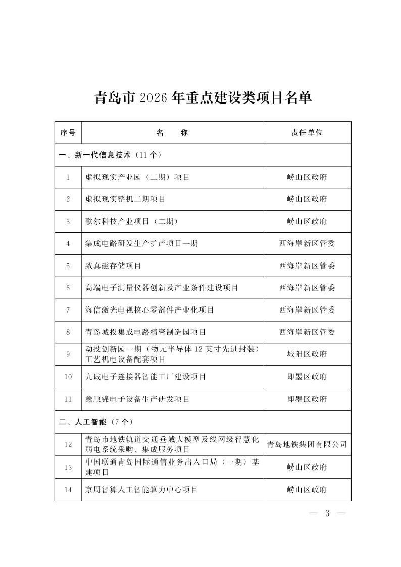 青岛市2026年重点项目名单已经市政府研究同意,现予以公布,请认真贯彻落实。