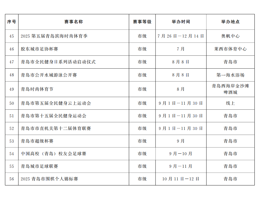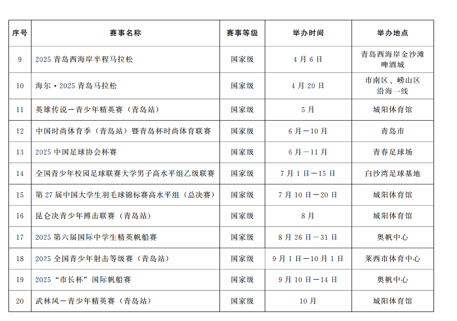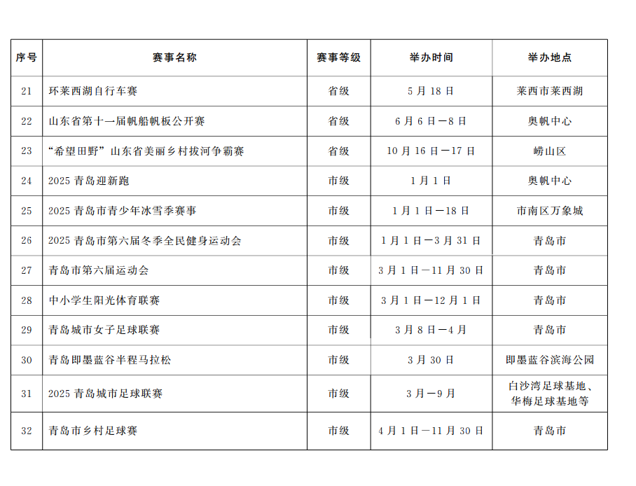 5.培育自主品牌赛事。发挥区位优势,依托上合示范区、沿黄流域高质量发展、胶东经济圈等国家、省区域发展战略,结合历史文化底蕴和自然生态资源,围绕山地、水(海)上、冰雪等具有时尚引领性、新兴体育项目,做大做强传统品牌赛事,培育具有青岛特色的自主品牌赛事,展现青岛城市形象,扩大城市影响力。(责任单位:市体育局、市财政局)